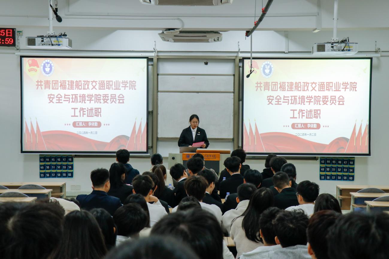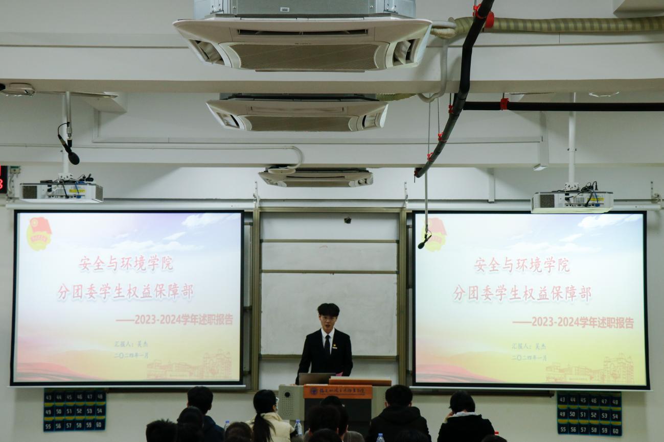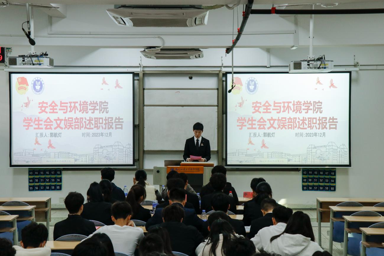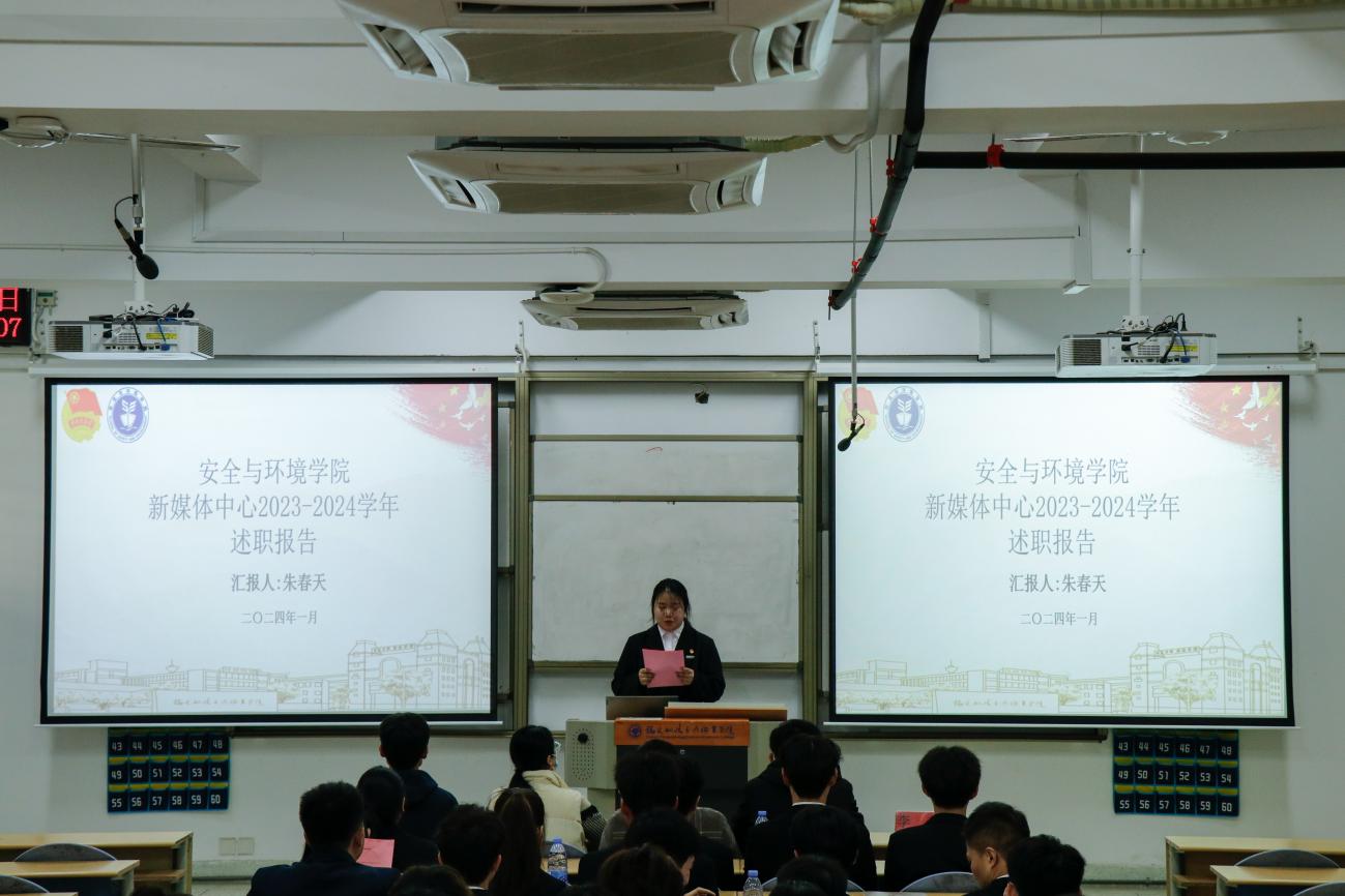 為深入學(xué)習(xí)貫徹習(xí)近平總書記關(guān)于青年工作的重要思想,進(jìn)一步推動學(xué)生組織建設(shè),提高學(xué)生干部綜合素質(zhì),總結(jié)本學(xué)年工作實(shí)效,規(guī)劃下一年度工作,2024年1月2日安全與環(huán)境學(xué)院在創(chuàng)新樓201教室組織召開團(tuán)委學(xué)生干部述職大會。安全與環(huán)境學(xué)院團(tuán)委書記彭志允、團(tuán)委組織委員張曉珊、團(tuán)委宣傳委員李花、輔導(dǎo)員牟鵬飛、輔導(dǎo)員何瀚深蒞臨本次會議。