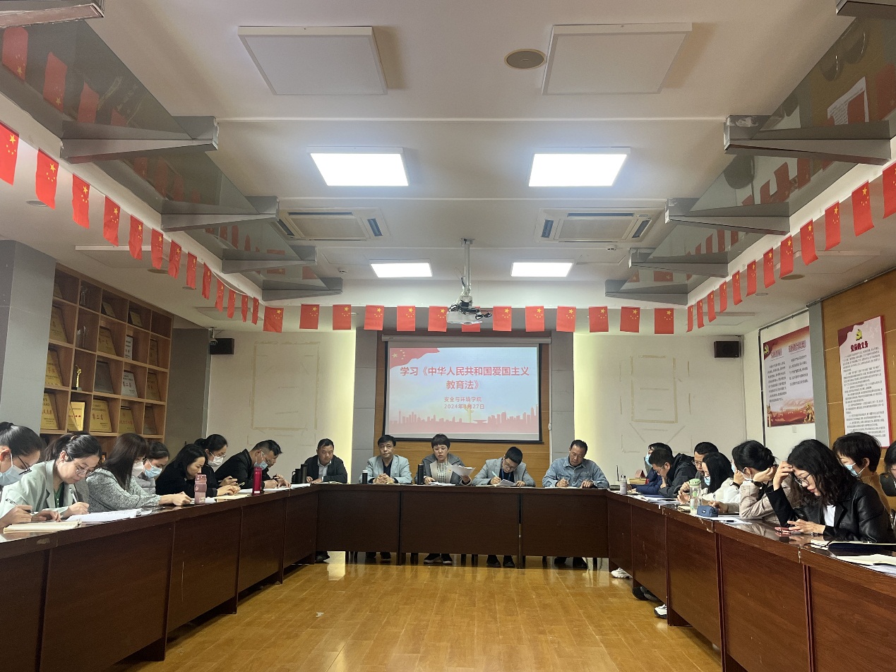 會議首先學(xué)習(xí)了《中華人民共和國愛國主義教育法》,各位教師就“如何在教育教學(xué)中踐行愛國主義教育法”這一問題展開討論。第一黨支部何瀚深老師說廣泛組織開展實(shí)踐活動,把愛國主義內(nèi)容融入各類教育活動之中,組織開展豐富多彩的校園文化活動,豐富拓展愛國主義教育校外實(shí)踐領(lǐng)域,在廣大青少年中開展深入、持久、生動的愛國主義教育,引導(dǎo)學(xué)生樹立國家意識、增進(jìn)愛國情感,把愛國情、強(qiáng)國志、報(bào)國行自覺融入實(shí)現(xiàn)中國夢的奮斗之中。大家紛紛表示,將把對愛國的崇敬轉(zhuǎn)化為前進(jìn)的動力,踏實(shí)努力、爭做人師、為黨育人、為國育才。