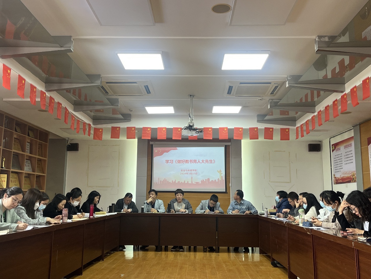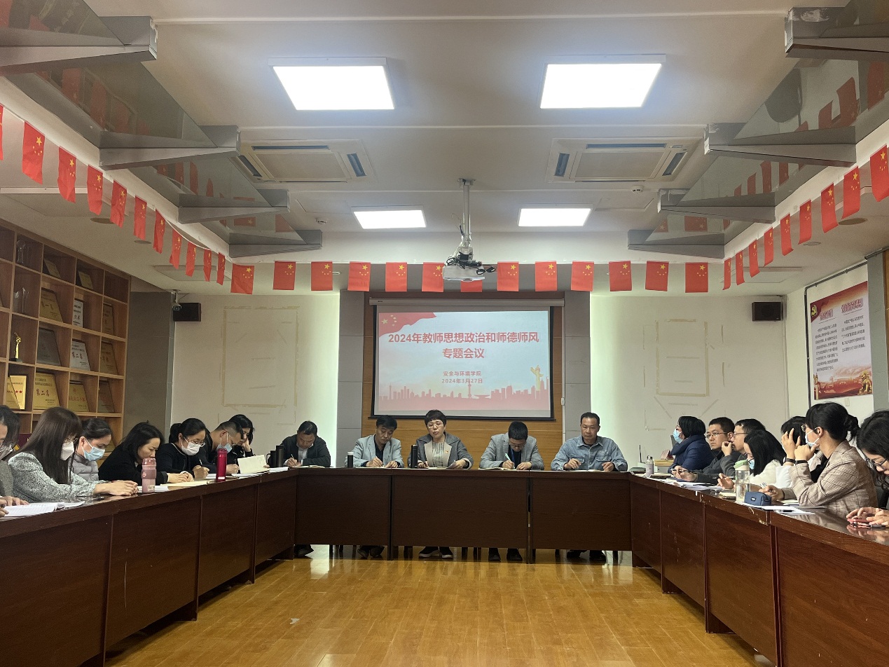為鞏固拓展學(xué)習(xí)貫徹習(xí)近平新時(shí)代中國特色社會主義思想主題教育成果,認(rèn)真學(xué)習(xí)貫徹習(xí)近平總書記關(guān)于教育的重要論述和指示批示精神,進(jìn)一步加強(qiáng)教師思想政治教育和師德師風(fēng)建設(shè)工作,落實(shí)立德樹人根本任務(wù),引導(dǎo)教師堅(jiān)守教育初心,踐行育人使命,規(guī)范從教行為,2024年3月27日下午,安全與環(huán)境學(xué)院在創(chuàng)新樓909會議室召開2024年教師思想政治和師德師風(fēng)專題會議,學(xué)院全體教職工參加。