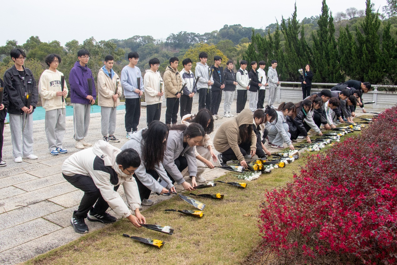 時間的長河流淌不息,卻沖不淡我們對先烈的緬懷。同學(xué)們懷著崇敬之情,走進(jìn)烈士紀(jì)念園舉行莊嚴(yán)肅穆的祭奠儀式。同學(xué)們依次為革命烈士獻(xiàn)花,在紀(jì)念碑前默哀、鞠躬,向英雄前輩們致以最崇高的敬意,以此表達(dá)我們對于守護(hù)家園的革命烈士深切的緬懷和哀思。