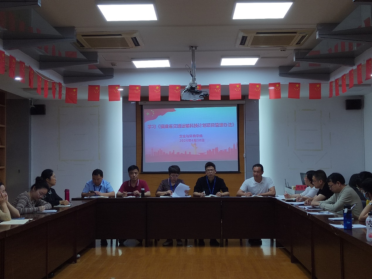 為進(jìn)一步統(tǒng)籌交通科技資源,規(guī)范交通科技計(jì)劃項(xiàng)目管理,提高科技項(xiàng)目的管理效率和實(shí)施成效。2024年4月30日下午,安全與環(huán)境學(xué)院組織全體教職工學(xué)習(xí)《福建省交通運(yùn)輸科技計(jì)劃項(xiàng)目管理辦法》。