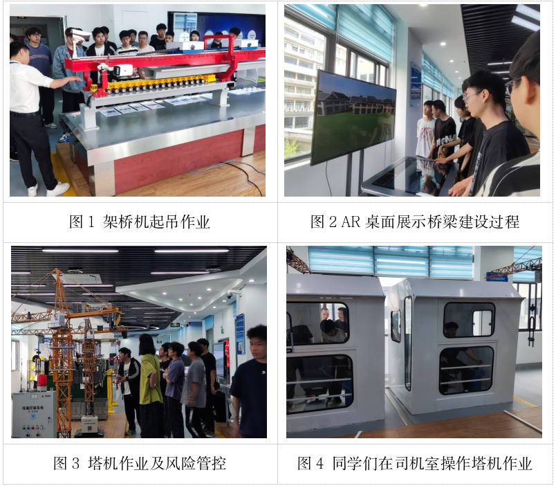 在智慧安全工地實訓室,同學們認識塔機、架橋機等大型施工機械的主要結(jié)構(gòu),了解橋梁建設(shè)過程,現(xiàn)場操作塔機,親身經(jīng)歷和感受大型機械的作業(yè)過程,辨識作業(yè)過程中的風險,了解作業(yè)安全管控要點。