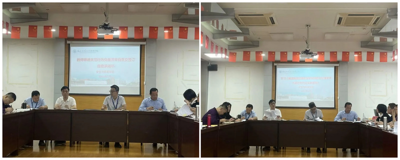 此后,全體教師針對教師師德失范行為負面清單所列出的具體內容,仔細認真地開展自查工作。在自查完成后,教師們現(xiàn)場簽署了自查承諾書。