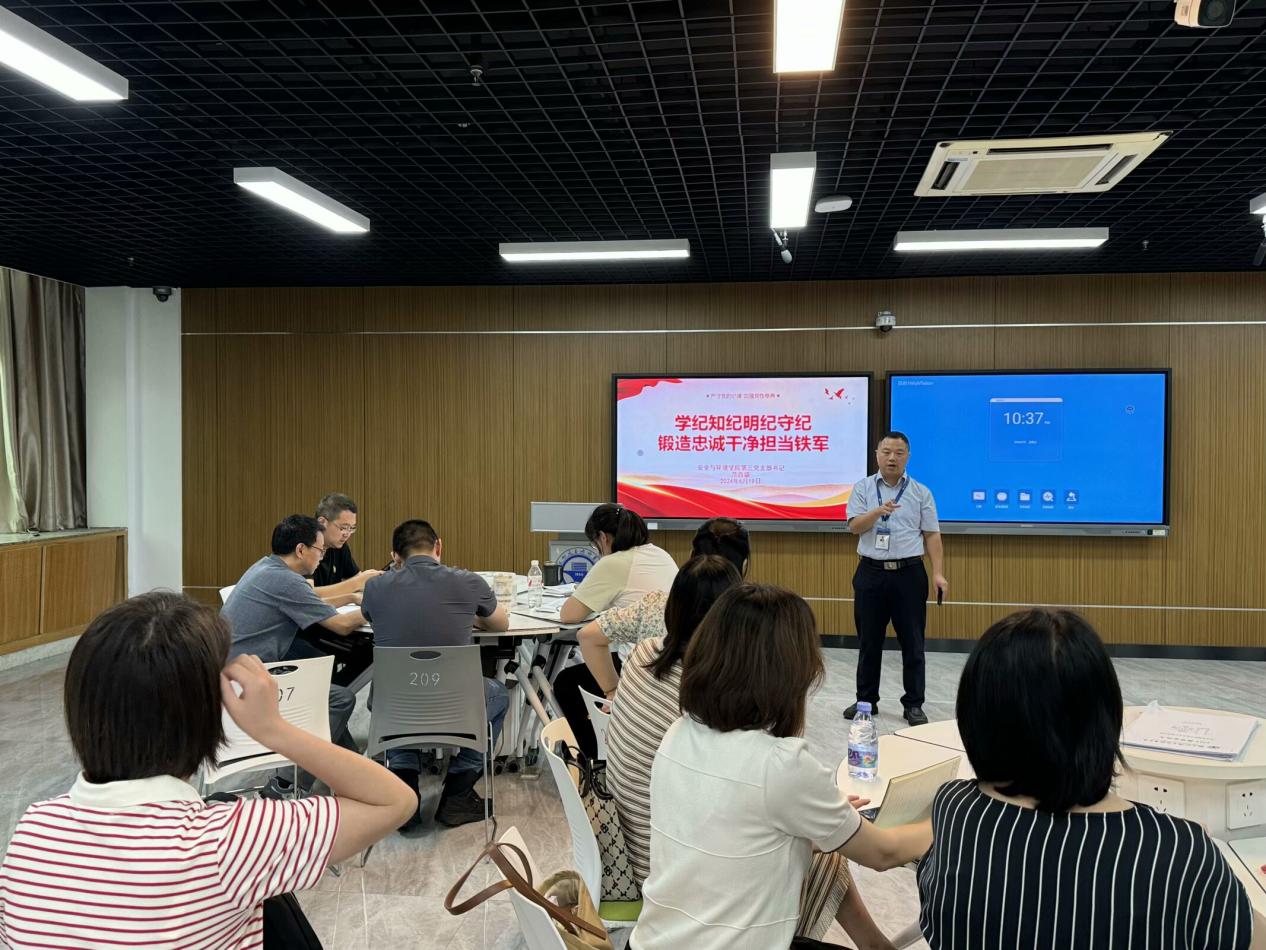 6月19日下午,我院第三黨支部書記范自盛同志以《學紀知紀明紀守紀,鍛煉忠臣干凈擔當鐵軍》為題講授黨紀學習教育專題黨課,三支部教師參加。