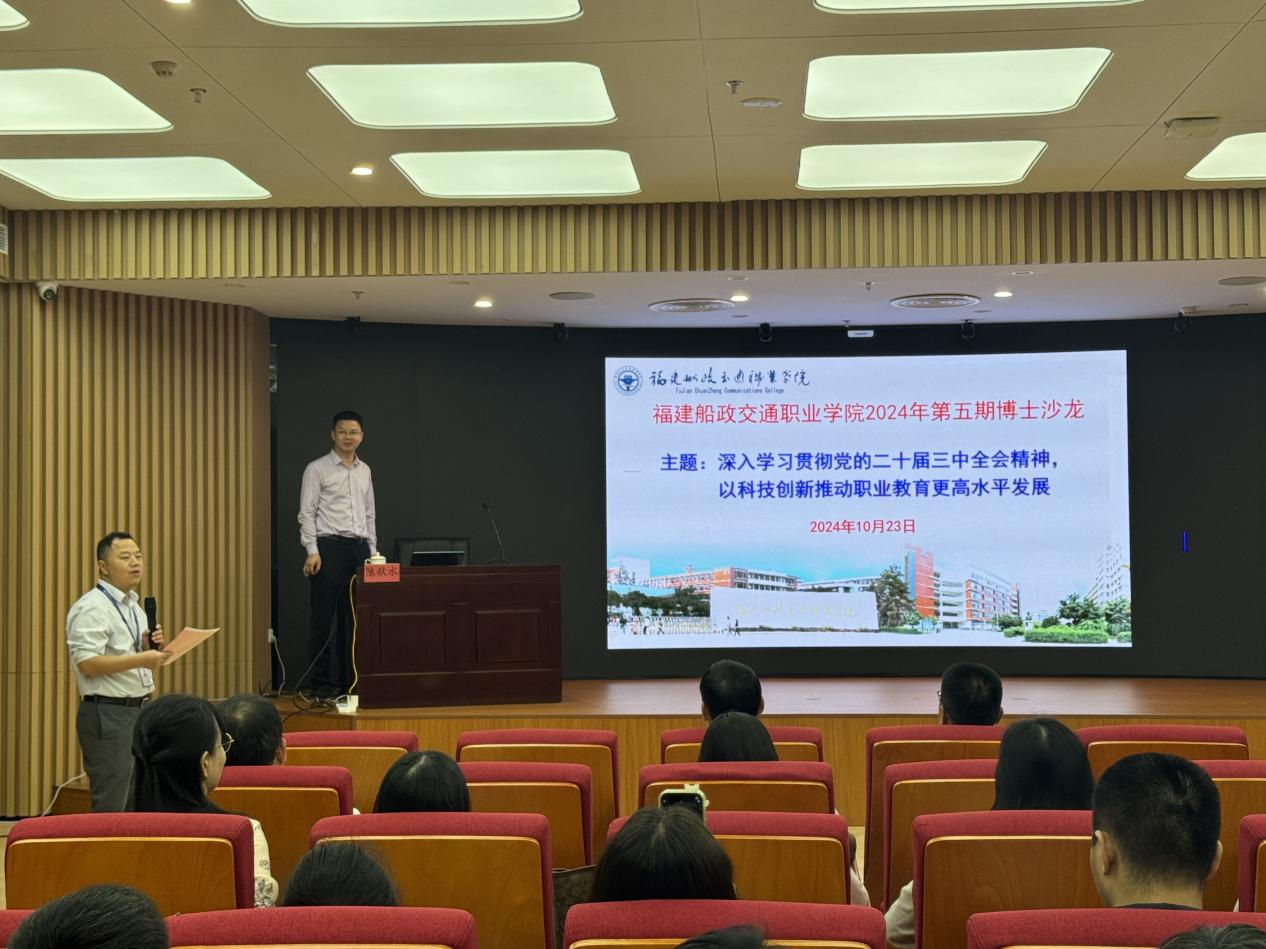 2024年10月23日,學(xué)院2024年第五期“博士沙龍”活動(dòng)在藝新樓334舉行。此次“博士沙龍”主題為“深入學(xué)習(xí)貫徹黨的二十屆三中全會(huì)精神,以科技創(chuàng)新推動(dòng)職業(yè)教育更高水平發(fā)展”,學(xué)院科技處相關(guān)負(fù)責(zé)人,各二級學(xué)院分管副院長,博士及在讀博士教師60余人參加活動(dòng)。此次活動(dòng)由安全與環(huán)境學(xué)院承辦。