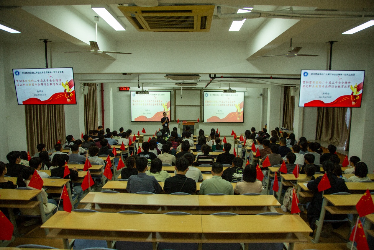 為進(jìn)一步深學(xué)細(xì)悟篤行黨的二十屆三中全會(huì)精神,深入學(xué)習(xí)宣傳貫徹全國(guó)教育大會(huì)精神,準(zhǔn)確把握職業(yè)教育專(zhuān)業(yè)群綜合教育改革新任務(wù)新要求,2024年10月30日下午,安全與環(huán)境學(xué)院院長(zhǎng)陳明仙教授做“貫徹落實(shí)黨的二十屆三中全會(huì)精神 深化職業(yè)教育專(zhuān)業(yè)群綜合教育改革”的專(zhuān)題報(bào)告,學(xué)院全體教師及部分學(xué)生代表參加宣講會(huì)。