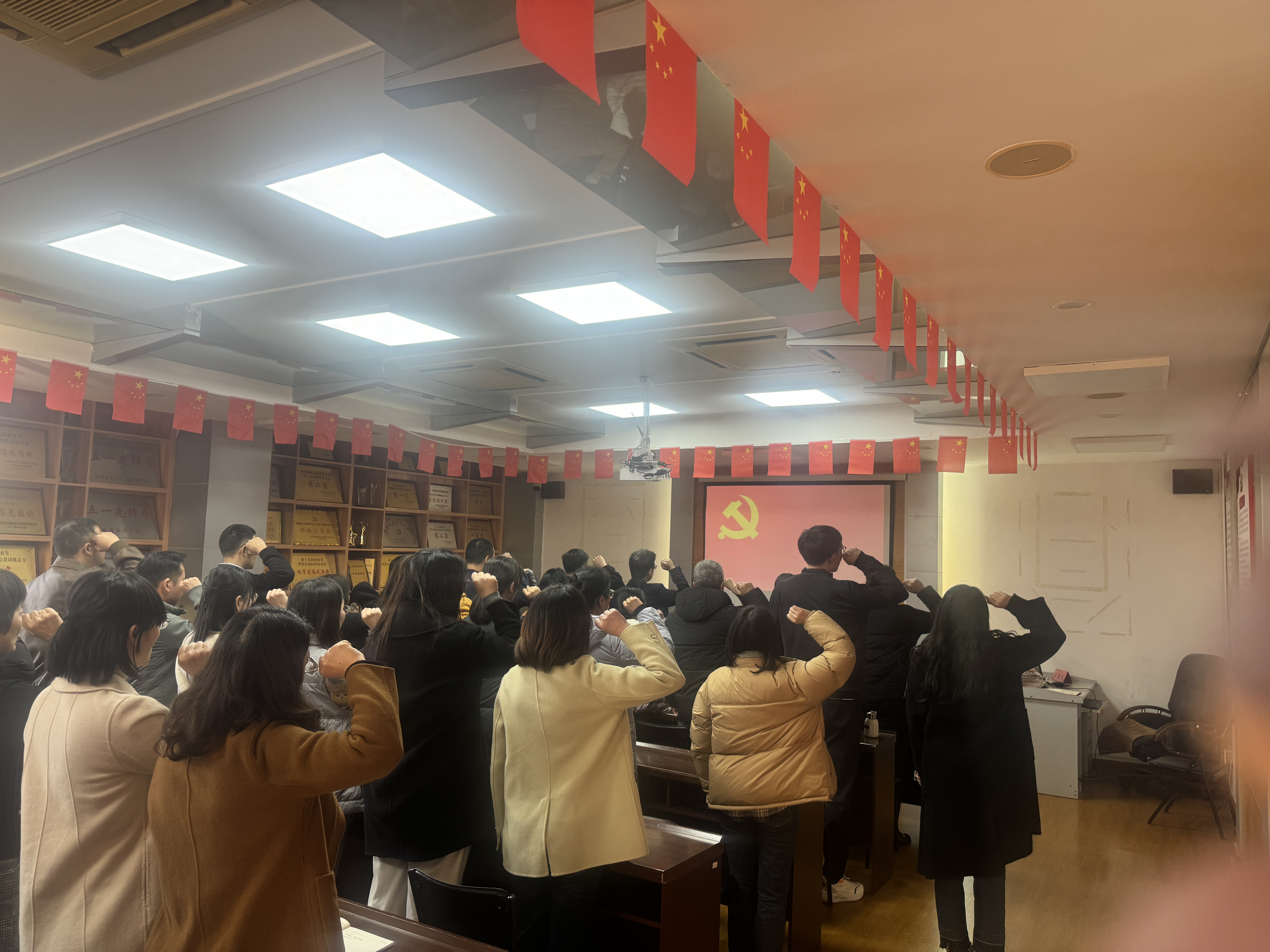 伴著莊嚴(yán)的國(guó)歌聲,集體過(guò)“政治生日”主題黨日活動(dòng)拉開(kāi)了序幕。全體黨員在鄭雪琴書記的帶領(lǐng)下,重溫了入黨誓詞。那一句句鏗鏘有力的誓言,全體黨員仿佛又回到了第一次入黨時(shí)的情景。