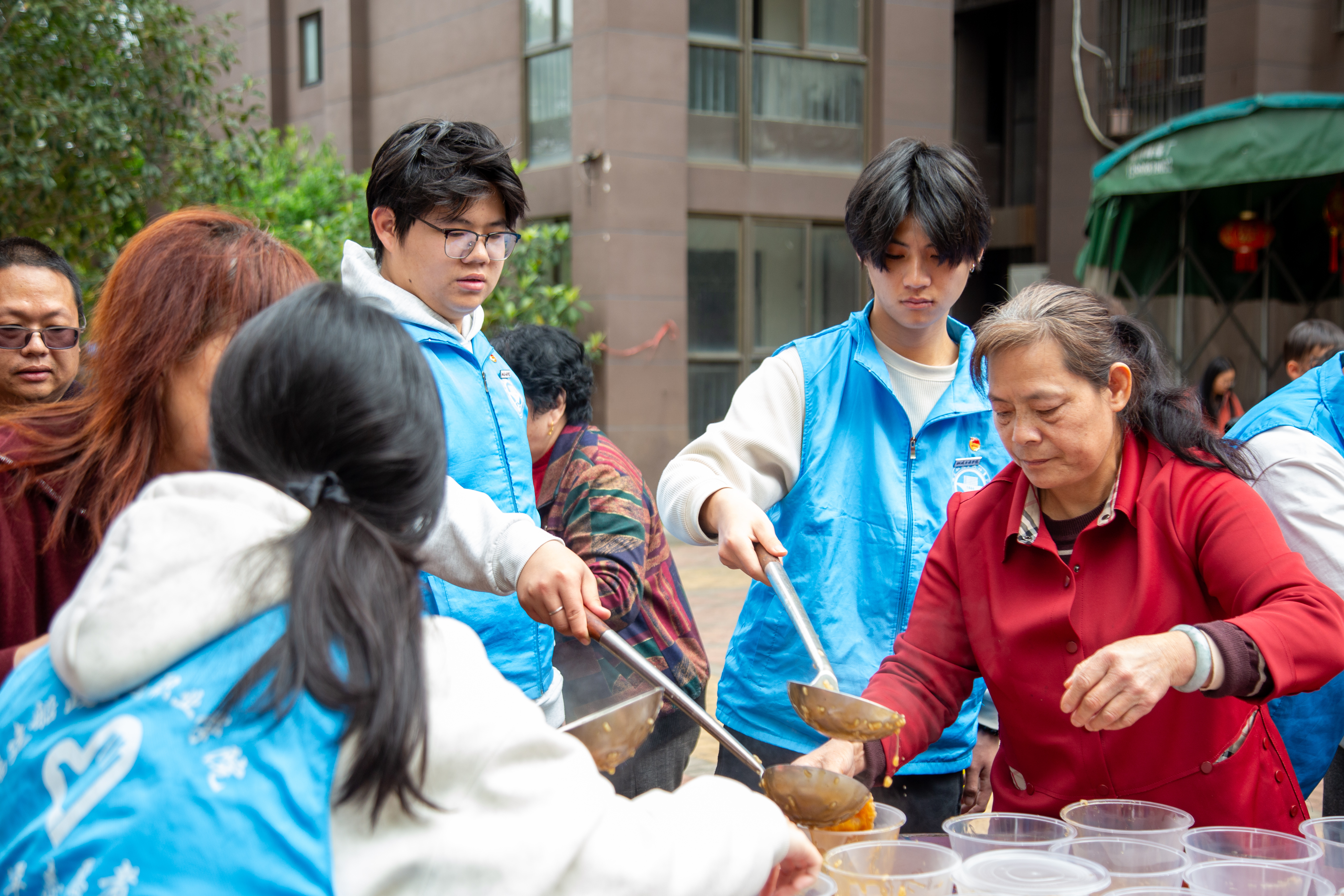 圖1 志愿者分發(fā)拗九粥 陳俊燁(攝)