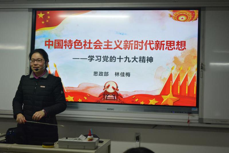講座開(kāi)始時(shí),林佳梅老師深入淺出、旁征博引,從四個(gè)方面為全體學(xué)生做了精彩的宣講報(bào)告。她從經(jīng)濟(jì)新常態(tài)、意識(shí)形態(tài)等領(lǐng)域,總結(jié)了十八大的成就,幫助大家進(jìn)一步認(rèn)清了十九大召開(kāi)的時(shí)代背景,概括總結(jié)了近年來(lái)國(guó)家經(jīng)濟(jì)型社會(huì)發(fā)展取得的輝煌成就,深入分析了當(dāng)前社會(huì)發(fā)展面臨的重要機(jī)遇,深刻闡述了如何堅(jiān)定理想信念、樹(shù)立“四個(gè)自信”,使學(xué)生們?yōu)閲?guó)家的快速發(fā)展而自豪。林佳梅老師還告訴我們,黨的十九大會(huì)議,是在全面建成小康社會(huì)決勝階段、中國(guó)特色社會(huì)主義發(fā)展關(guān)鍵時(shí)期召開(kāi)的一次十分重要的大會(huì)。它承擔(dān)著謀劃決策、全面建成小康社會(huì)、深入推進(jìn)社會(huì)主義現(xiàn)代化建設(shè)的重大任務(wù),它的召開(kāi)關(guān)系著黨和國(guó)家事業(yè)能否蒸蒸日上,關(guān)系著中國(guó)特色社會(huì)主義前途命運(yùn),關(guān)系著廣大人民最根本的利益,而這些內(nèi)容正是與我們的生活所息息相關(guān)的。
