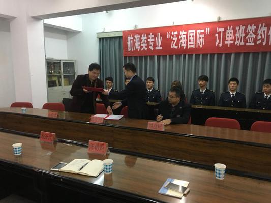 積極響應(yīng)國(guó)家關(guān)于加強(qiáng)學(xué)校和企業(yè)合作的號(hào)召,充分發(fā)揮校企雙方優(yōu)勢(shì),適應(yīng)國(guó)際船員勞務(wù)市場(chǎng)需要,滿足國(guó)內(nèi)外船東對(duì)航海人才需求。12月6日下午,我院在校友樓四樓會(huì)議室舉行了由航海技術(shù)系江明光主任主持的針對(duì)航海類專業(yè)的“泛海國(guó)際”訂單班簽約儀式。學(xué)院副院長(zhǎng)高汝武、廈門(mén)泛海國(guó)際船舶管理有限公司副總經(jīng)理周永煌、教務(wù)處處長(zhǎng)陳朝慰、航海技術(shù)系主任江明光、輪機(jī)工程系主任陳清彬、航海技術(shù)系黨總支書(shū)記劉群勇以及各學(xué)生代表參加。