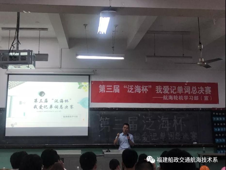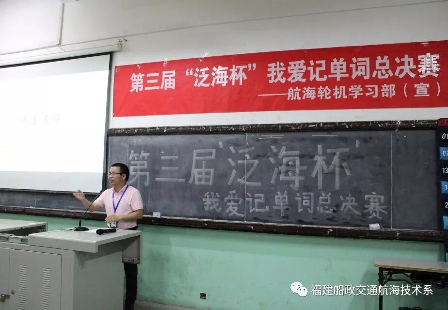 2019年5月22日晚,由航海技術系學習部、輪機工程系學習部主辦、由廈門泛海國際船舶管理有限公司贊助的的第三屆“泛海杯”我愛記單詞英語大賽決賽在航東大圓滿落幕。航海技術系副主任翁國玲副教授、廈門泛海國際船舶管理有限公司副總經(jīng)理周永煌、廈門泛海國際船舶管理有限公司業(yè)務一部經(jīng)理吳文炳船長、航海技術系林森茂老師、輪機工程系方麗君老師,航海技術系、輪機工程系學生會主席團代表、參賽選手參與此次大賽,本次大賽由翁國玲副教授、林森茂老師、方麗君老師擔任現(xiàn)場評委。
