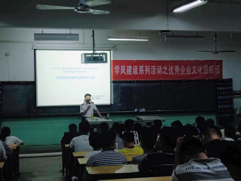 為深入學習貫徹落實習近平新時代中國特色社會主義思想和黨的十九大精神,切實加強學風建設,促進學生學習與發(fā)展,航海技術系于6月12日晚七點,在航東大舉行學風建設系列活動之優(yōu)秀企業(yè)文化進校園“航海技術專業(yè)學生職業(yè)規(guī)劃以及認知講座”。參加講座的有航海技術系翁國玲副主任及17、18級航海技術專業(yè)全體學生。