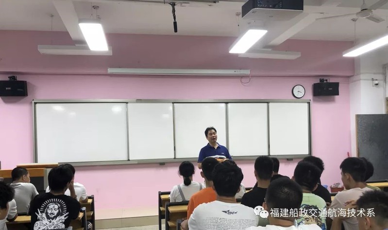鄭友賦老師則為同學(xué)們介紹了本專(zhuān)業(yè)的課程及就業(yè)前景,并通過(guò)船舶運(yùn)輸管理的基本理論知識(shí),點(diǎn)明在未來(lái)的學(xué)習(xí)生活中,同學(xué)們將接受船舶操縱、避碰及合理運(yùn)用各種航圖、導(dǎo)航儀器儀表和GMDSS通信方面的基本訓(xùn)練,以及消防、急救等一些高級(jí)船員必備的能力培養(yǎng)。并期望這些系統(tǒng)性的學(xué)習(xí),能對(duì)同學(xué)們未來(lái)的生活有所幫助。