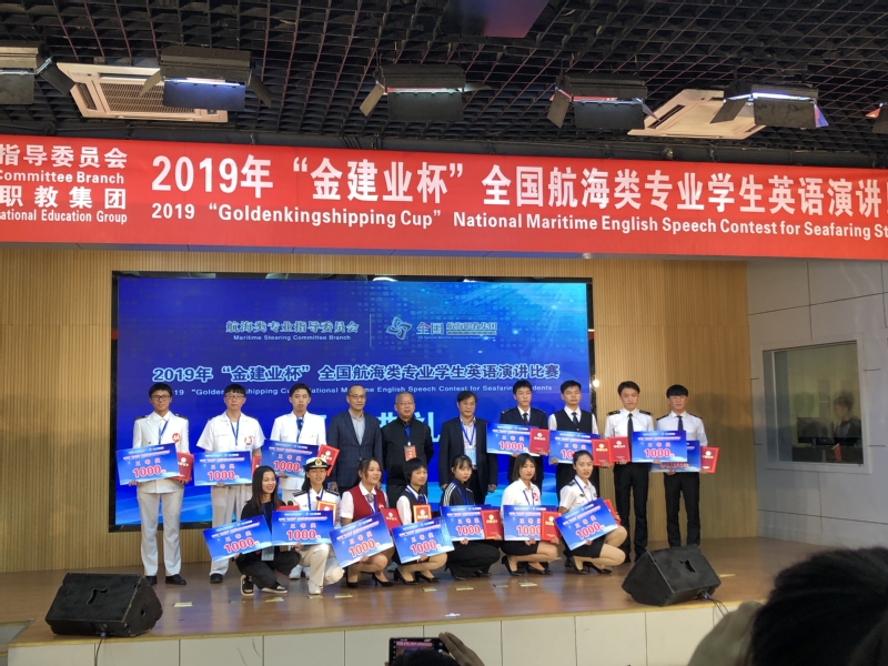 2019年10月25日—27日,全國交通航指委、全國航海職教集團,在江蘇航運職業(yè)技術(shù)學院舉辦“金建業(yè)杯”全國航海類專業(yè)學生英語演講比賽。來自全國23所航海類院校共45名選手參賽,比賽精彩紛呈,競爭激烈,最終我院2位選手18國際郵輪乘務(wù)管理2班張旭,19國際郵輪乘務(wù)管理2班洪燕清脫穎而出,分獲二、三等獎,黃超夷老師獲優(yōu)秀指導(dǎo)老師稱號。本次比賽,備賽期間,系部高度重視,劉劍劍老師不計個人得失、在繁重教學工作之余,全程參與并分擔部分工作,體現(xiàn)新時代航海教師之情懷。