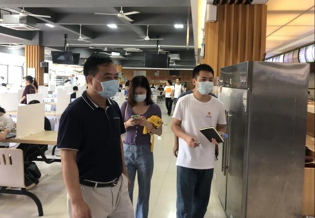 座談會(huì)后,第一支部的黨員同志在黨總支副書記伍小明同志的帶領(lǐng)下,深入學(xué)生食堂和宿舍進(jìn)行了調(diào)研,考察就餐和生活環(huán)境的防控工作情況、檢查落實(shí)值班制度情況、關(guān)心慰問同學(xué)們。