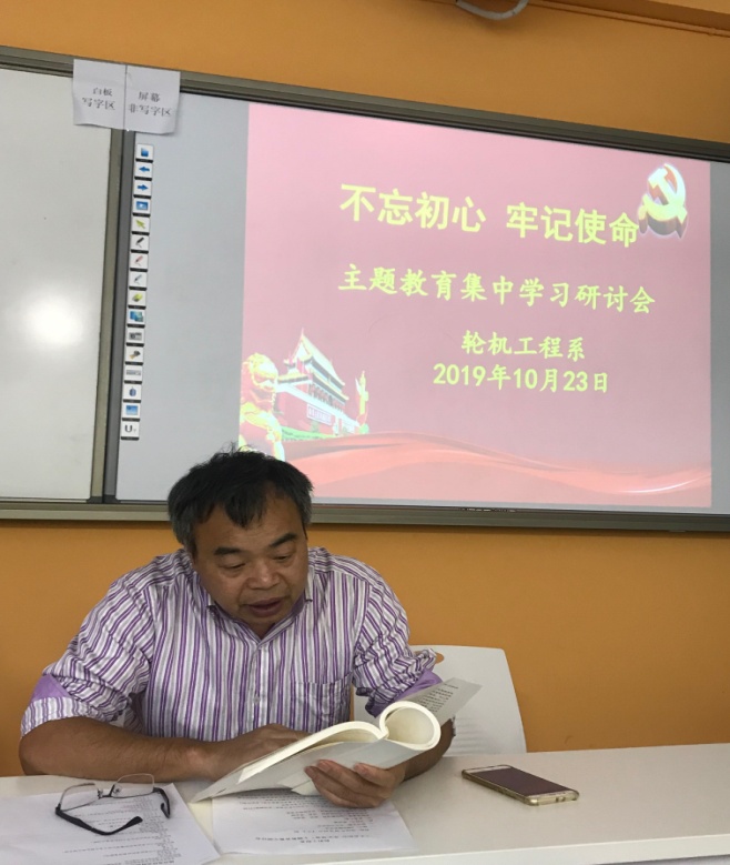 2019年10月23日下午2:30,輪機(jī)工程系黨總支在南區(qū)31#111室召開“不忘初心、牢記使命”主題教育第四次集中學(xué)習(xí)研討會(huì),系主任陳清彬主持會(huì)議,學(xué)院第三巡回指導(dǎo)組成員鄧本超同志參加會(huì)議,全體黨員參加學(xué)習(xí)。