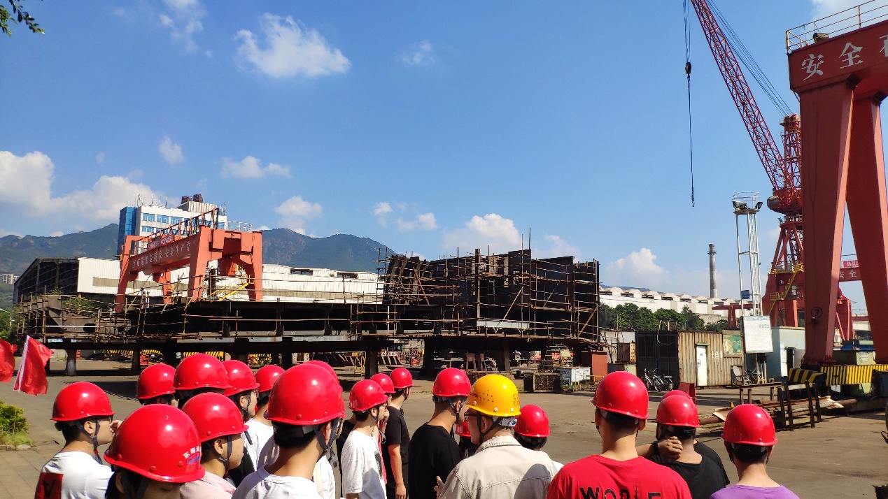 福建東南造船船廠負(fù)責(zé)人首先向同學(xué)們介紹了公司的位置區(qū)域和整體規(guī)劃,船舶制造流程、船體結(jié)構(gòu)。船廠不比寫字樓,工作環(huán)境相對(duì)沒有那么舒適,甚至有些辛苦,但每個(gè)選擇了這里的人都沒有退縮,勤勤懇懇地在自己的崗位上努力奮斗著,讓大家參觀后感觸很多、很多。