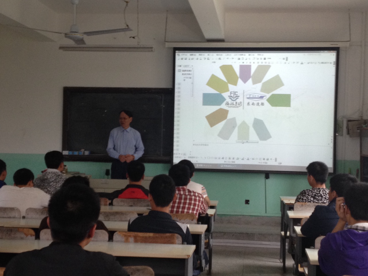 (四)5月12日受陳清彬主任誠邀,福州億力船舶科技有限公司的江金春總經(jīng)理來我系為17級船舶、船機的學生舉辦講座,講解近來福建省造船業(yè)行業(yè)情況以及億力公司的企業(yè)文化,通過ppt圖片展示,且一一回答學生提問,使學生對就業(yè)前景有了更深層次的了解。