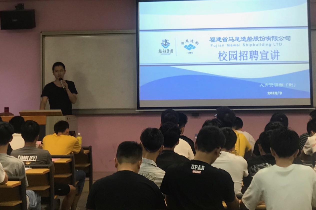 2019年9月25日下午,我系在南區(qū)31# 108教室召開(kāi)福建馬尾造船股份有限公司專場(chǎng)招聘會(huì),本次招聘會(huì)主要面向我系2020屆船舶工程技術(shù)、船舶機(jī)械工程技術(shù)專業(yè)畢業(yè)生。