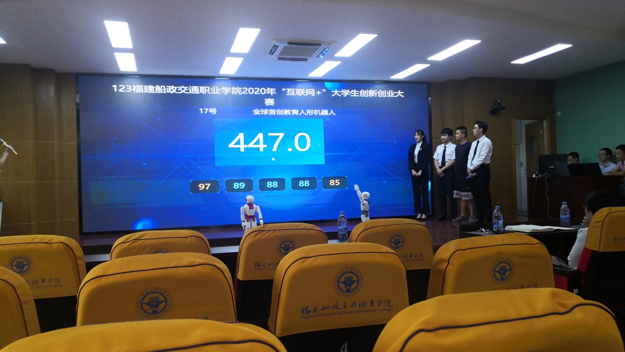經(jīng)過激烈的網(wǎng)絡(luò)評審、現(xiàn)場答辯、線上評分。我系“福仔教育人形機(jī)器人”項目以447分榮獲校賽第一,“小柒當(dāng)家”項目以445分榮獲校賽第二。