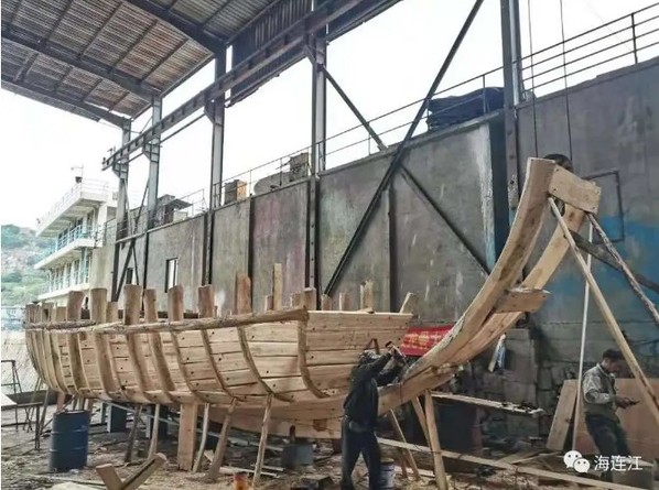 心瀾號船體采用樟木與杉木等木材手工打造,首先選取木材,將其芯子、表皮去掉,然后用熱水將木板燙軟打造出彎彎的船身,再通過船榫手工拼接,經(jīng)過前期設(shè)計(jì)、放樣、放龍骨、制配底殼等多個(gè)環(huán)節(jié)。