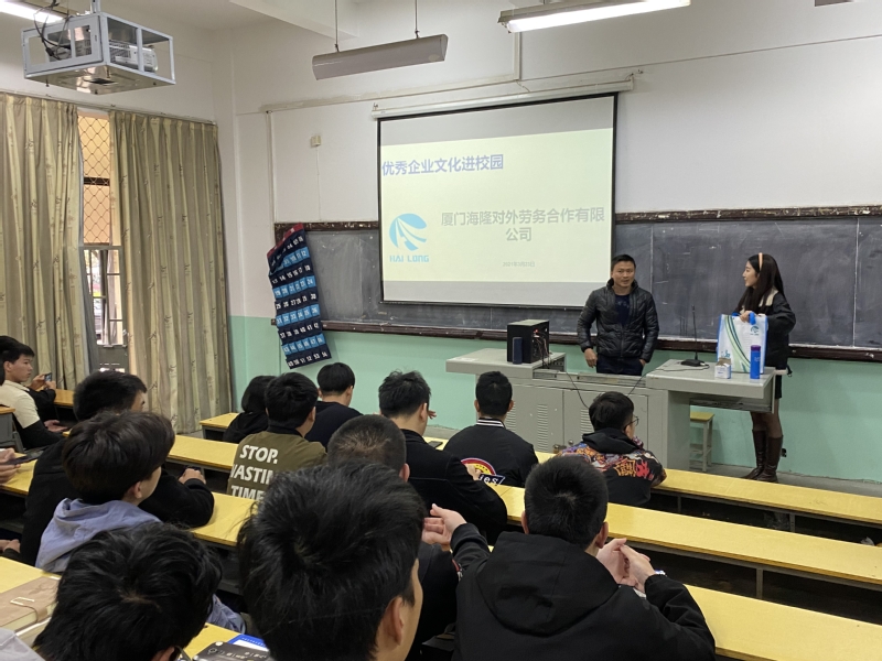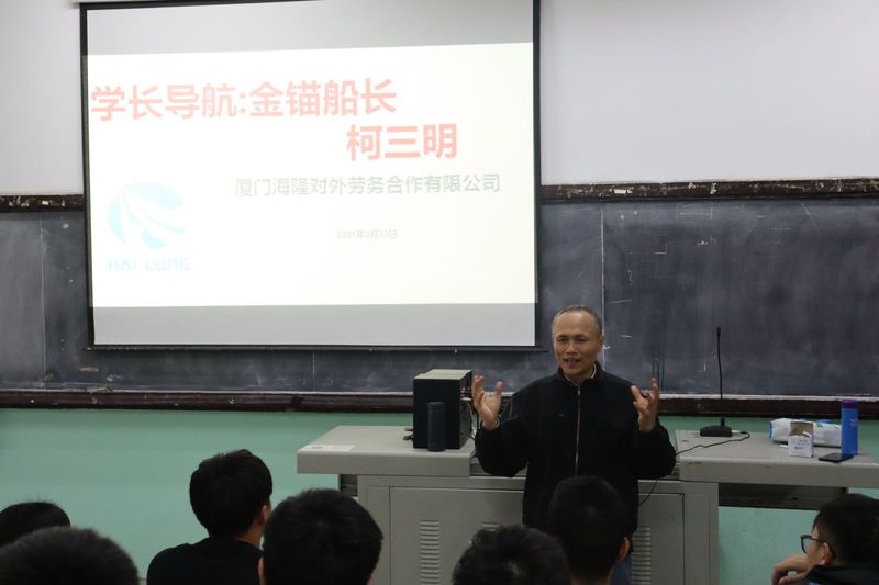 3月23日下午,廈門海隆對外勞務合作有限公司副總經(jīng)理林凱凌、船管部經(jīng)理柯三明、法務專員張悅文一行三人來到航海學院為2022屆航海類(航海技術(shù)專業(yè)、輪機工程技術(shù)專業(yè))學生做企業(yè)文化宣講。