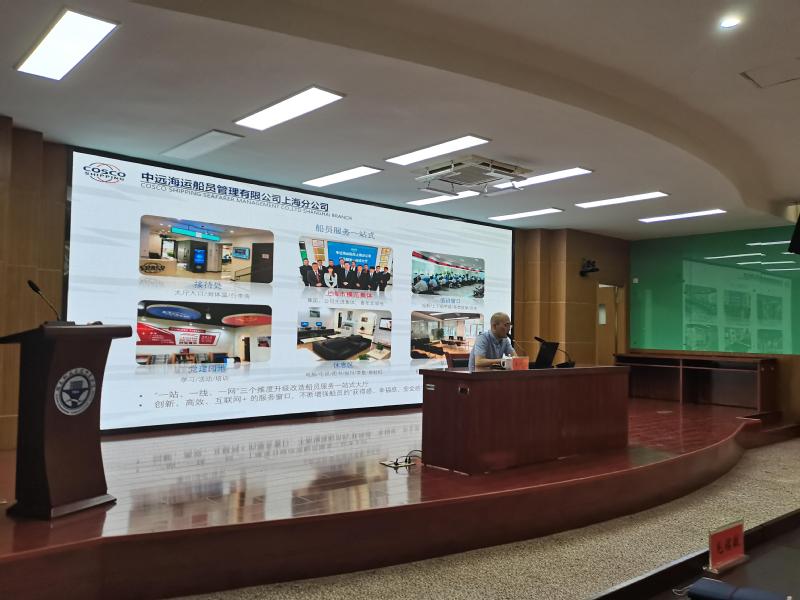 為加強高素質(zhì)船員隊伍建設(shè)、深化校企合作,6月22日上午,中遠(yuǎn)海運船員管理有限公司上海分公司王國進(jìn)書記一行蒞臨我校。在北區(qū)1號樓學(xué)術(shù)報告廳為我院航海類專業(yè)學(xué)子做航運企業(yè)宣講會。