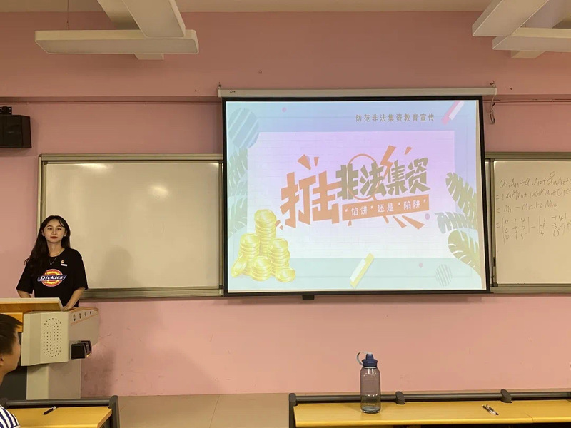 活動(dòng)現(xiàn)場(chǎng)由20級(jí)競(jìng)選助教的組長(zhǎng)演講人員分場(chǎng)為同學(xué)們介紹了什么是非法集資,非法集資的定義,特征、基本類型和常見的手段,及其危害,通過簡(jiǎn)單有趣的語言為同學(xué)們分析已成功查處并審結(jié)的典型案例,披露非法集資犯罪主體的經(jīng)營(yíng)真相,揭露非法集資的手法伎倆,使學(xué)生們懂得識(shí)別金融風(fēng)險(xiǎn)、從而進(jìn)行自我保護(hù)。航海學(xué)院積極開展廣覆蓋、多樣化、深層次的宣傳活動(dòng)。增強(qiáng)學(xué)生們的識(shí)別意識(shí),提高防范、抵御非法集資活動(dòng)的能力,培育其理性投資、風(fēng)險(xiǎn)自擔(dān)的正確概念,自覺遠(yuǎn)離非法集資的濃厚氛圍,從源頭上抵制非法集資高發(fā)蔓延的勢(shì)頭,有效遏制不法分子的違法犯罪行為。