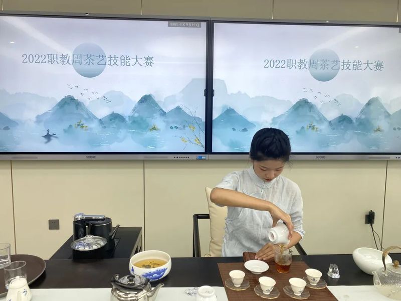 21世紀時中國人的世紀,也必將是中國茶的世紀,茶文化是中國博大精深傳統(tǒng)文化最靚麗的符號之一,為迎接職教周,弘揚中華茶文化,將“技能,讓生活更美好”的精神融入職業(yè)教育人才培養(yǎng)中,為了解中國茶文化,體會中國茶文化博大精深,給學生藝術的熏陶和美的享受。2022年5月12日,福建船政交通職業(yè)學院《萬名學子,百項技能大賽——茶藝技能大賽》在南區(qū)新實訓大樓二樓中式郵輪五高訓練中心二期舉行。國際郵輪乘務管理專業(yè)的茶藝愛好者參加了本次比賽。比賽設置三個環(huán)節(jié),從茶藝展示、茶類識別以及口試環(huán)節(jié),全方位的考察選手們在茶藝技能上的水平。