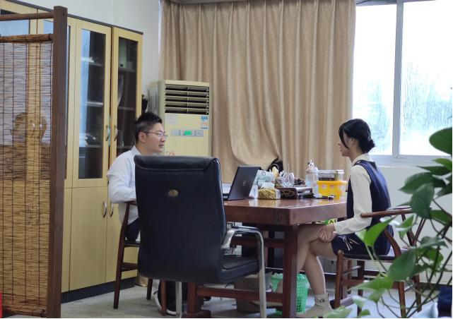 宣講結(jié)束后,李樂天經(jīng)理給有志于從事郵輪服務(wù)行業(yè)的同學(xué)們進(jìn)行一對(duì)一的面試,為即將開始頂崗實(shí)習(xí)的同學(xué)提供面對(duì)面的就業(yè)指導(dǎo)。