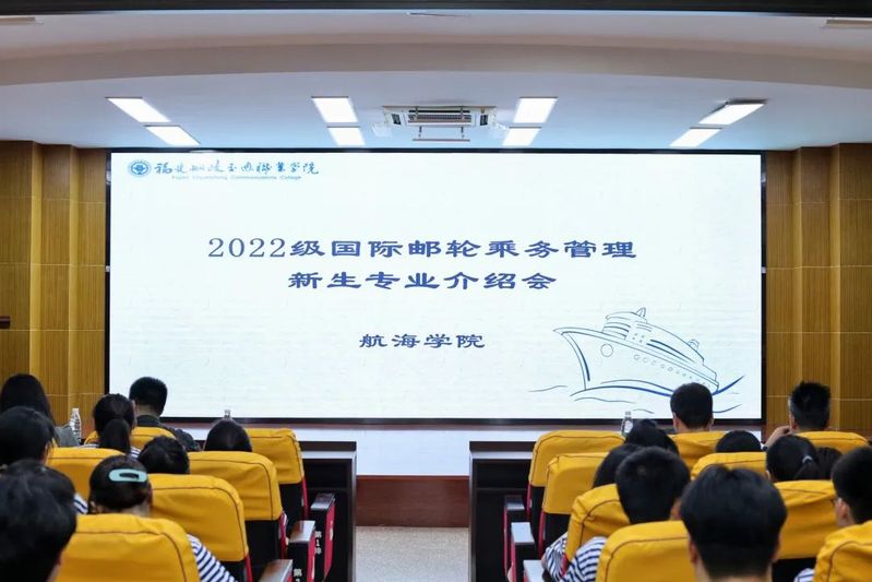 2022年9月15日晚,航海學(xué)院舉辦了國際郵輪乘務(wù)管理新生專業(yè)介紹會,本次介紹會由國際郵輪乘務(wù)管理教研室主任黃超夷主持。