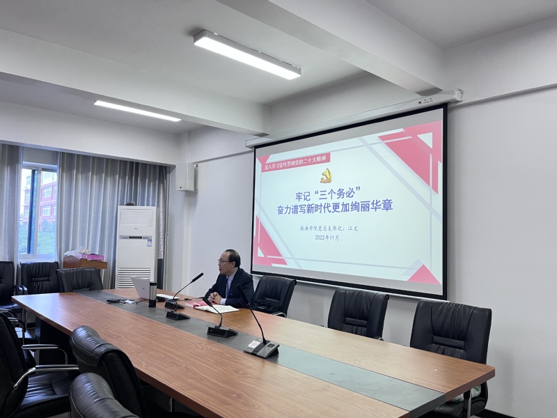 為深入學(xué)習(xí)宣傳貫徹黨的二十大精神,深刻認(rèn)識(shí)重大意義,準(zhǔn)確把握目標(biāo)要求,2022年11月26日,航海學(xué)院黨總支于校友之家307會(huì)議室召開黨的二十大精神專題宣講會(huì),由航海學(xué)院黨總支書記江文,黨總支副書記朱寶杉,輔導(dǎo)員林杰分別宣講黨的二十大精神。
