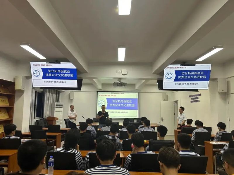 為扎實(shí)開展學(xué)習(xí)貫徹習(xí)近平新時(shí)代中國(guó)特色社會(huì)主義思想主題教育,促進(jìn)學(xué)生更加充分、更高質(zhì)量就業(yè),航海學(xué)院大力推進(jìn)管理、教育、服務(wù)、指導(dǎo)為一體的畢業(yè)生就業(yè)服務(wù)體系建設(shè),持續(xù)推進(jìn)就業(yè)育人工作高質(zhì)量發(fā)展。5月17日晚,廈門海隆對(duì)外勞務(wù)合作有限公司輪機(jī)長(zhǎng)高寶林、船員部李忠華到校,為航海類學(xué)子進(jìn)行航海類職業(yè)生涯規(guī)劃的講座。