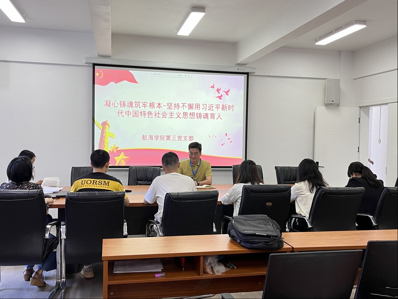 航海學(xué)院第三黨支部于2023年5月17日在校友樓307召開主題教育學(xué)習(xí),研討專題——凝心鑄魂筑牢根本-堅(jiān)持不懈用習(xí)近平新時(shí)代中國特色社會(huì)主義思想鑄魂育人,專題主要發(fā)言人為支部書記李翼。主要發(fā)言學(xué)習(xí)內(nèi)容為堅(jiān)定不移高舉中國特色社會(huì)主義偉大旗幟。黨和國家的長期實(shí)踐充分證明,只有社會(huì)主義才能救中國,只有中國特色社會(huì)主義才能發(fā)展中國。只有高舉中國特色社會(huì)主義偉大旗幟,才能團(tuán)結(jié)帶領(lǐng)全黨全國各族人民全面建成小康社會(huì),建成富強(qiáng)民主文明和諧的社會(huì)主義現(xiàn)代化國家,贏得中國人民和中華民族更加幸福美好的未來。