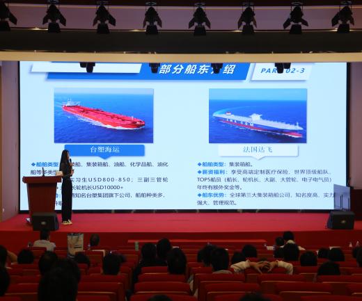 企業(yè)代表向?qū)W生詳盡介紹了企業(yè)的文化背景、發(fā)展歷程、發(fā)展前景、晉升機制、薪資福利、崗位招聘要求等方面情況,企業(yè)就職的21級學長也分享了船上的工作經(jīng)驗以及心得體會,讓同學們充分了解市場需求和職業(yè)發(fā)展方向。