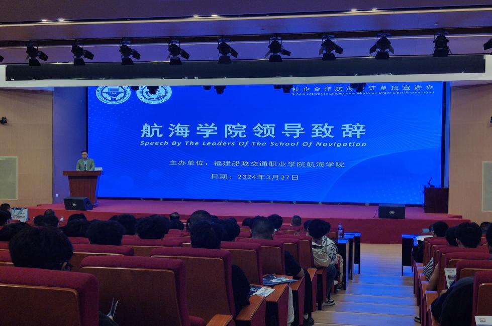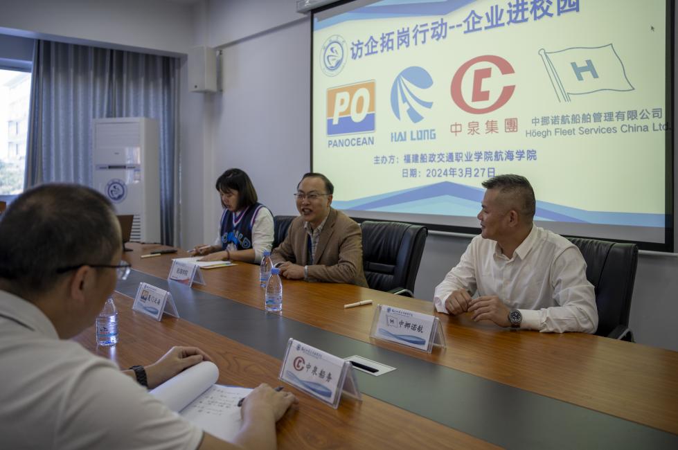 本年度的四家企業(yè)廈門泛海國際船舶管理有限公司、廈門海隆對外勞務(wù)合作有限公司、泉州中泉國際經(jīng)濟技術(shù)合作(集團)有限公司船務(wù)分公司、中挪諾航船舶管理有限公司(2024年新增),面向2022級、2023級航海技術(shù)、輪機工程專業(yè)學生開展了校企合作班訂單式培養(yǎng)宣講。