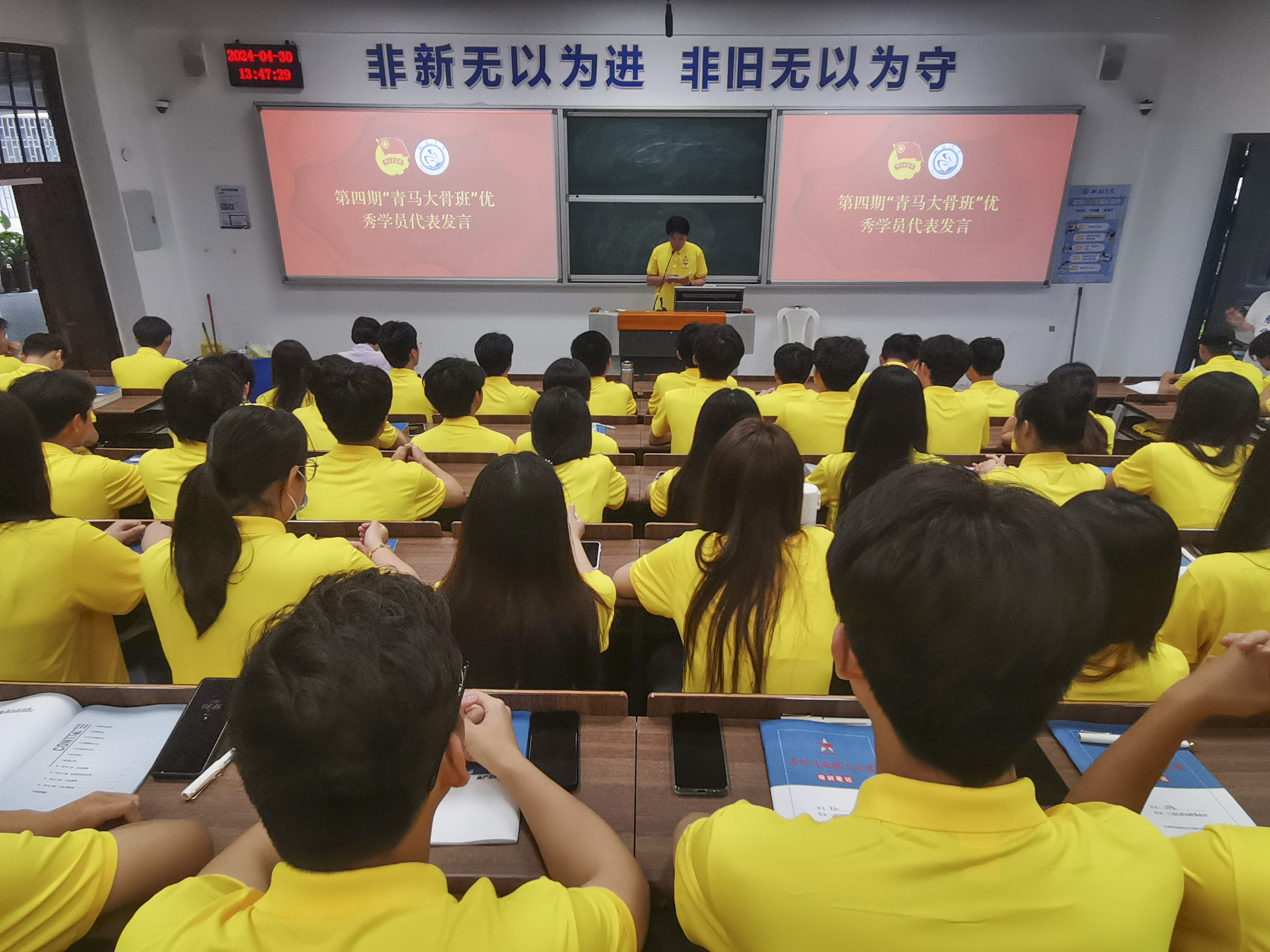 第四期“青馬大骨班”優(yōu)秀學(xué)員代表王澤韜在發(fā)言中號(hào)召全體學(xué)員們要珍惜學(xué)習(xí)機(jī)會(huì),做馬克思主義的堅(jiān)定信仰者、認(rèn)真學(xué)習(xí)者和忠實(shí)踐行者。學(xué)會(huì)從優(yōu)秀走向卓越,堅(jiān)定理想信念,志存高遠(yuǎn),腳踏實(shí)地,勇做時(shí)代的弄潮兒,在實(shí)現(xiàn)中國(guó)夢(mèng)的生動(dòng)實(shí)踐中放飛青春夢(mèng)想,在不懈奮斗中書寫人生華章。