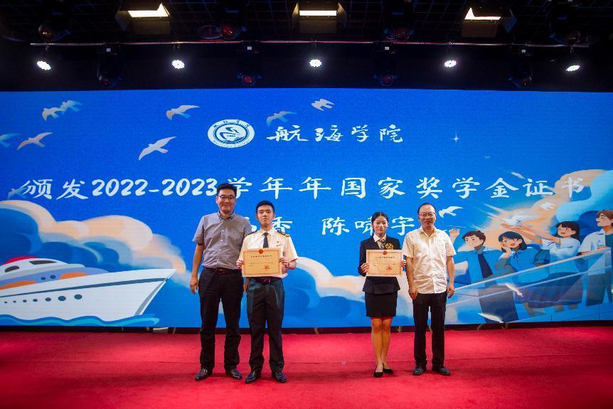 國家獎(jiǎng)學(xué)金,是對(duì)學(xué)子們勤奮學(xué)習(xí)、全面發(fā)展的最高榮譽(yù)認(rèn)可。它象征著國家對(duì)青年才俊的殷切期望,也是對(duì)他們不懈努力的最好回報(bào)。每一份獎(jiǎng)學(xué)金的背后,都凝結(jié)著學(xué)子們無數(shù)個(gè)日夜的努力與汗水,是他們用智慧和勤奮譜寫的青春華章。現(xiàn)場由航海學(xué)院黨總支書記江文與航海學(xué)院院長李翼為2021級(jí)國際郵輪乘務(wù)管理4班劉馬香、2021級(jí)航海技術(shù)2班陳嘯宇頒獎(jiǎng)。