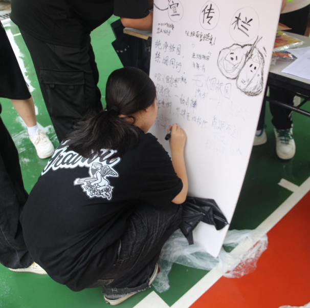 “香煙遠(yuǎn)離手,健康跟我走”,宣傳標(biāo)語是開展控?zé)熜麄髦匾囊徊糠?,同學(xué)們通過在KT板上寫控?zé)熜麄鳂?biāo)語以增加對抽煙危害的了解,讓更多人了解世界無煙日開展的意義。