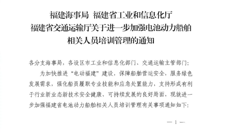 近日,福建海事局與福建省工業(yè)和信息化廳、福建省交通運輸廳三部門聯(lián)合印發(fā)了《關(guān)于進一步加強電池動力船舶相關(guān)人員培訓(xùn)管理的通知》(以下簡稱通知),《通知》明確了將福建船政交通職業(yè)學(xué)院聯(lián)合編制的《福建省電池動力船舶船員培訓(xùn)教材》,作為福建省開展電池動力船舶相關(guān)人員培訓(xùn)的統(tǒng)編教材?!督滩摹分荚谌轿徽宫F(xiàn)電池動力船舶的知識體系、操作準則、安全管理制度及應(yīng)急處理措施,以此規(guī)范電池動力船舶船員培訓(xùn),保障培訓(xùn)效果。