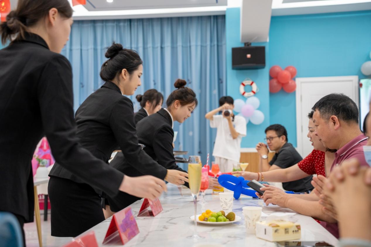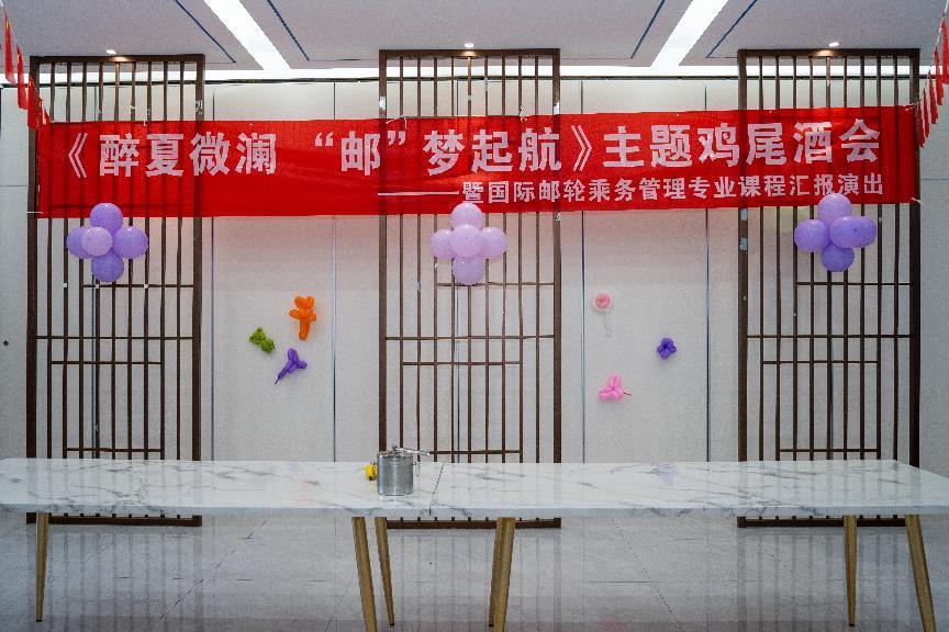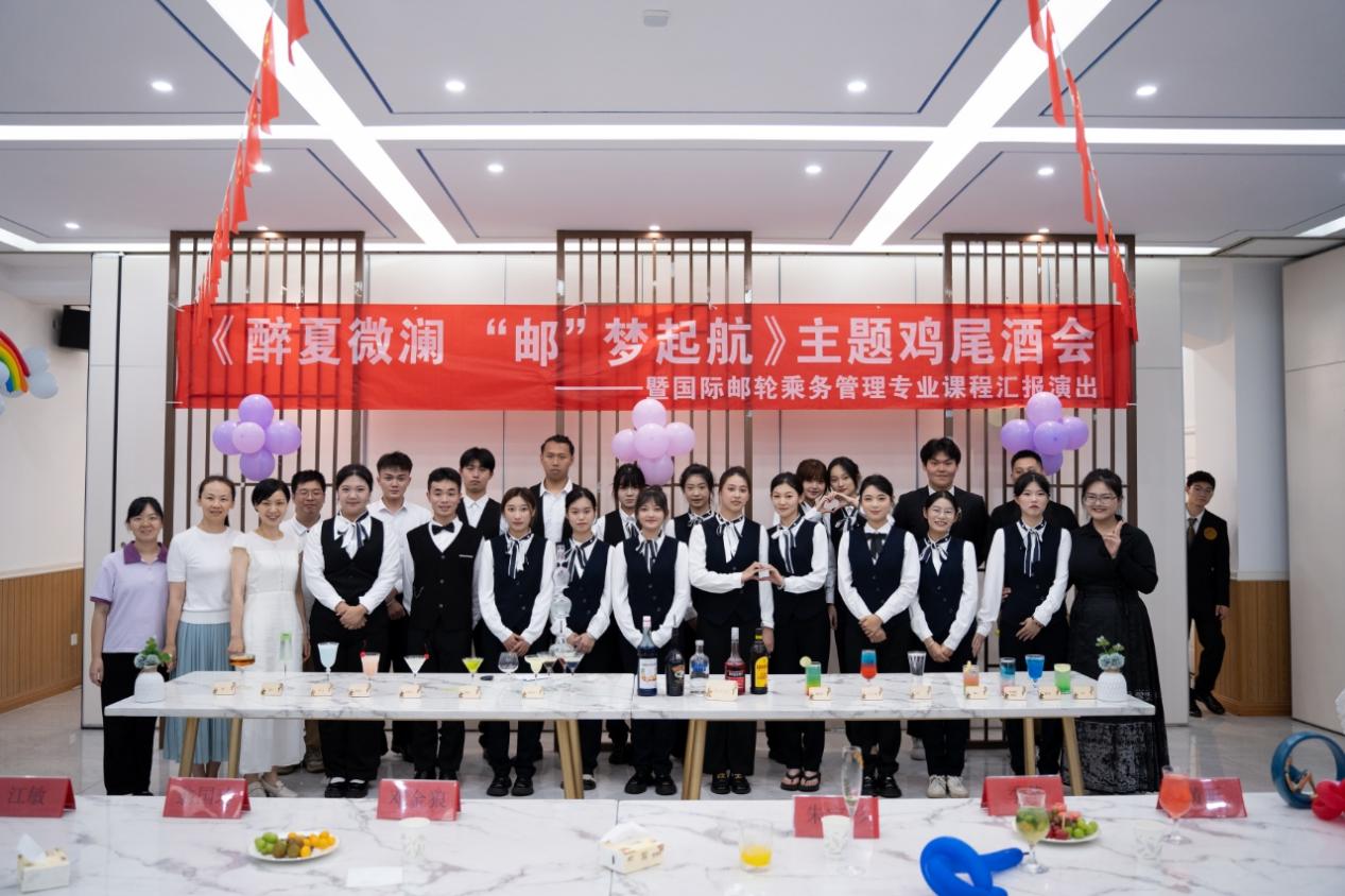為展現(xiàn)國際郵輪乘務管理專業(yè)學子的風采與才華,2024年6月13日,航海學院特此舉辦“醉夏微瀾,‘郵’夢啟航”主題雞尾酒會活動。教務處副處長鄧金狼,空中乘務專業(yè)教研室主任江敏,軌道交通學院副院長季芳,航海學院副院長翁國玲,航海學院副書記朱寶杉,航海學院國際郵輪乘務管理專業(yè)教研室主任黃超夷,企業(yè)酒水專家、專業(yè)酒水品鑒課程特聘教師黃昕以及各專業(yè)老師、國際郵輪乘務管理專業(yè)學生參加本次活動。