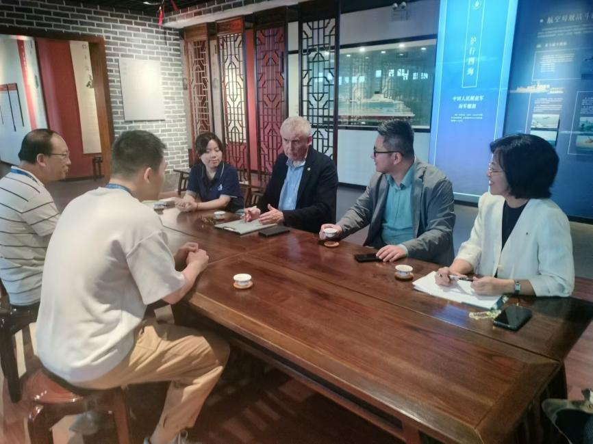 參觀后,貝雷先生與學(xué)院黨支部江文書記和翁國玲副院長會面,就考察情況進(jìn)行溝通。雙方交流了學(xué)院在國際郵輪乘務(wù)管理專業(yè)的教學(xué)理念、師資力量及發(fā)展規(guī)劃,同時貝雷先生分享了郵輪企業(yè)在船員培訓(xùn)方面的經(jīng)驗和需求,對共建國際郵輪船員實訓(xùn)基地表達(dá)了積極意愿。