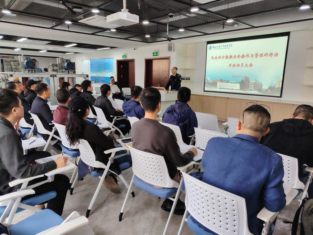 3月24日,福建省首期校企合作全鏈條電池動力船舶船員培訓(xùn)班在我校正式開班,來自沿海和內(nèi)河的20名航運企業(yè)學(xué)員參加電池動力船舶船員基本培訓(xùn)。福州海事局副局長鄭俊義、福州市水路運輸事業(yè)發(fā)展中心副主任林鄭峰蒞臨開班動員大會并致辭,航海學(xué)院院長李翼主持開班儀式。本次培訓(xùn)班在福建海事局、福州海事局和福州市水路運輸事業(yè)發(fā)展中心指導(dǎo)推動下,實現(xiàn)了我省電池動力船舶船員培養(yǎng)從政策框架向標準化落地的標志性跨越。