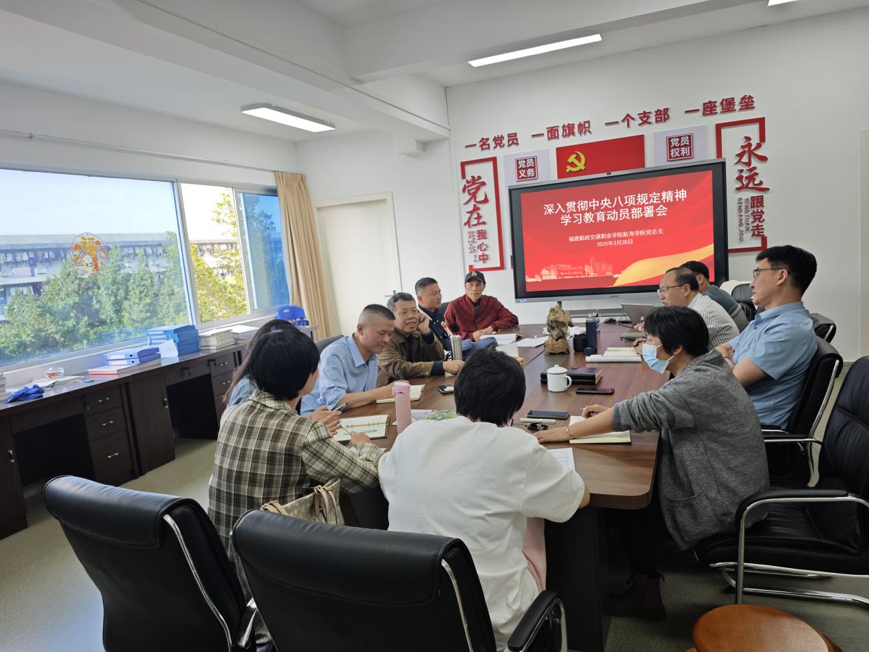 3月28日,航海學院黨總支召開深入貫徹中央八項規(guī)定精神學習教育動員部署會。領導班子成員、副科級及以上干部、黨支部書記、教研室負責人參加會議。會議由黨總支書記江文同志主持。