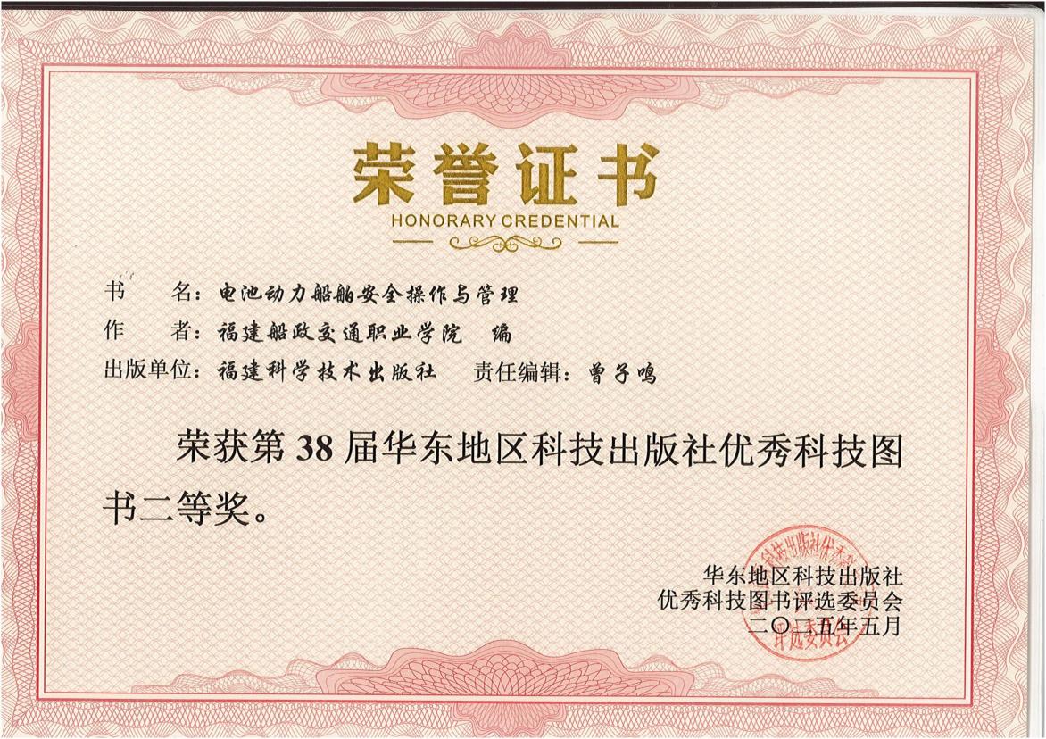 近日,第38屆華東地區(qū)科技出版社優(yōu)秀科技圖書評選結(jié)果揭曉,由福建海事局組織編寫,我校李翼教授主編的《電池動力船舶安全操作與管理》榮獲二等獎。