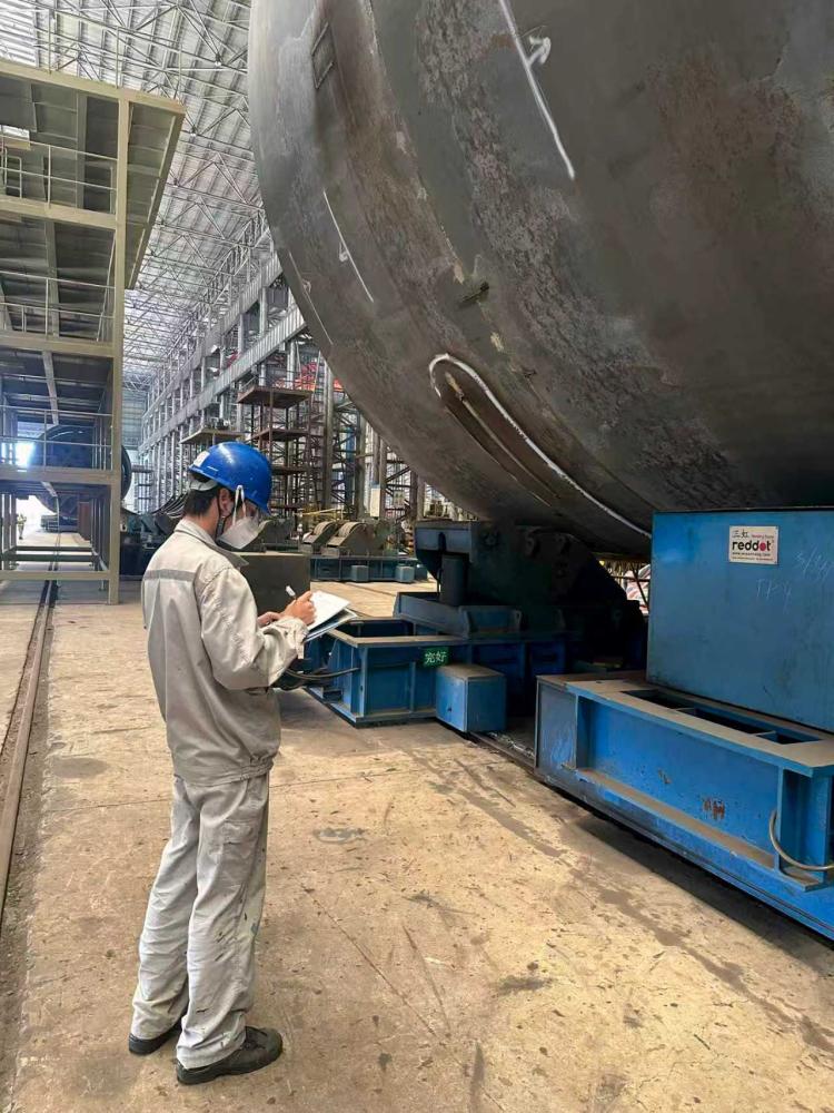 實習(xí)初期:23年10月,我進入福船一帆實習(xí),我感受到了前所未有的挑戰(zhàn)。進入一帆,我最先接觸到的是LNG儲罐項目,這和我在大學(xué)所學(xué)的船舶知識差異顯著,相當(dāng)于一個全新的開始。但當(dāng)割刀切割鋼板時迸發(fā)的絢麗的火花讓我瞬間愛上了這份工作。
