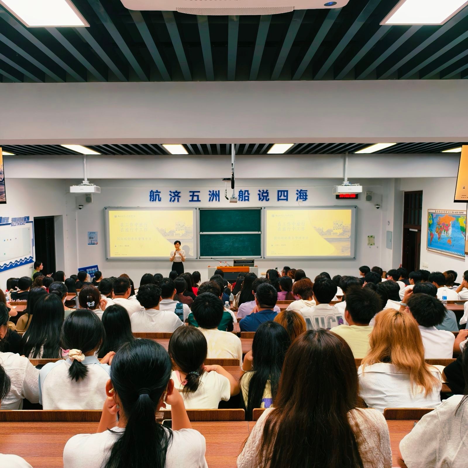 隨后,廈門海陸海事服務(wù)有限公司李樂天經(jīng)理結(jié)合多年行業(yè)經(jīng)驗,深入剖析了國際郵輪產(chǎn)業(yè)的發(fā)展趨勢與人才需求。他指出,隨著全球郵輪旅游市場的復(fù)蘇與擴(kuò)張,具備國際化視野、跨文化溝通能力和扎實服務(wù)技能的乘務(wù)人才備受青睞。李經(jīng)理以本校2015級優(yōu)秀畢業(yè)生陳麗娜(現(xiàn)任職于歌詩達(dá)郵輪)為例,鼓勵新生珍惜在校時光,夯實語言、禮儀與應(yīng)急處理能力,積極考取國際認(rèn)證證書,為未來登上世界知名郵輪公司奠定堅實基礎(chǔ)。