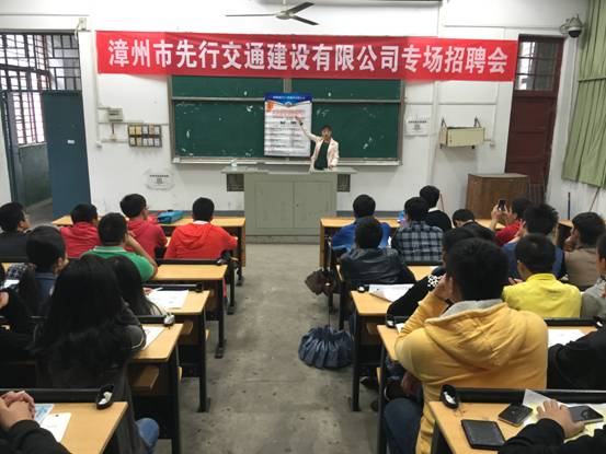 為促進我系2016屆畢業(yè)生就業(yè),在我系的精心安排下,于2015年11月4日下午2:00~4:00在土建樓第二階梯教室召開了漳州先行交通建設有限公司專場招聘會.