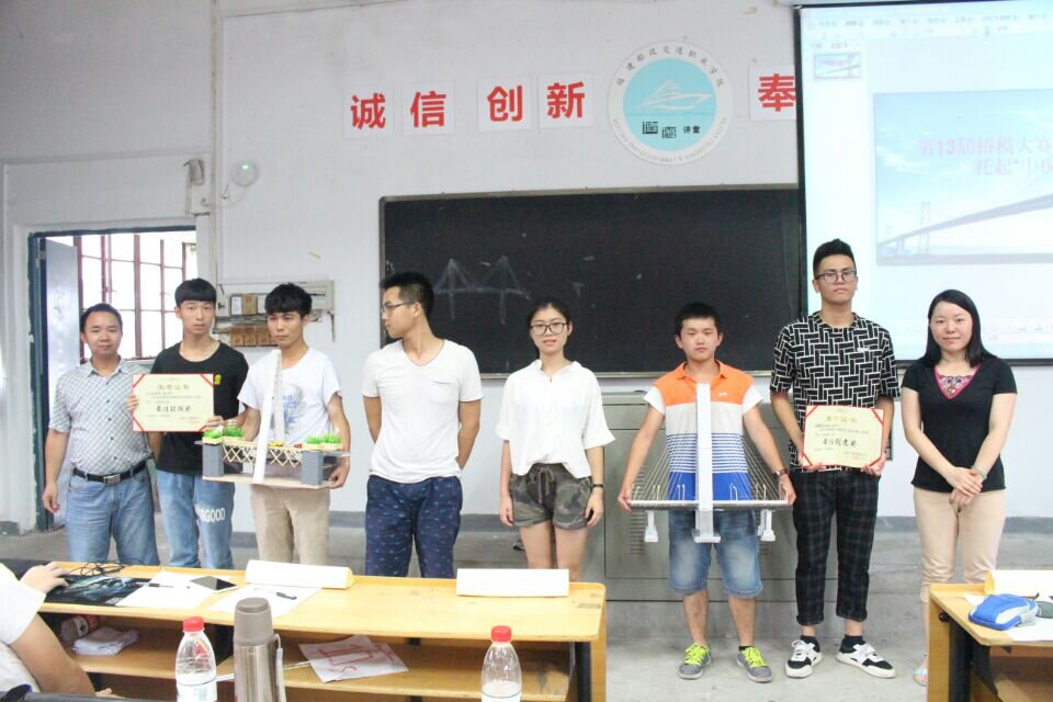 為了培養(yǎng)我系學(xué)生的創(chuàng)新意識、合作精神,提高學(xué)生的創(chuàng)新設(shè)計能力、動手實踐能力,將學(xué)習(xí)到的專業(yè)知識模擬運(yùn)用在活動中,豐富校園學(xué)術(shù)氛圍,我系于2016年6月1日在8號樓第二階梯教室舉辦了“用青春夢”托起“中國夢”第十三屆橋模大賽。