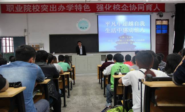 國務(wù)院決定,從今年起每年5月的第二周為職業(yè)教育活動周。為配合學(xué)校貫徹落實(shí)“國務(wù)院關(guān)于加快發(fā)展現(xiàn)代職業(yè)教育的決定”精神,加快我?,F(xiàn)代職業(yè)教育體系建設(shè),提升我校知名度和影響力,以及大力宣傳報(bào)道我校辦學(xué)特色和辦學(xué)成就、優(yōu)秀畢業(yè)生事跡,宣傳職業(yè)教育和技術(shù)技能人才在現(xiàn)代化建設(shè)中的作用,引導(dǎo)社會樹立正確的人才觀和就業(yè)觀,進(jìn)一步提高職業(yè)教育的社會影響力和吸引力。5月23日我系邀請企業(yè)專家-王北海副總經(jīng)理給我系學(xué)生代表做專題講座。